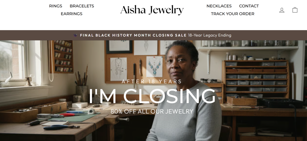 The Aisha Jewelry closing sale may look like a genuine small business shutting down, but the available evidence does not strongly support that story. The gap between the site’s claims and what can be independently verified is significant.