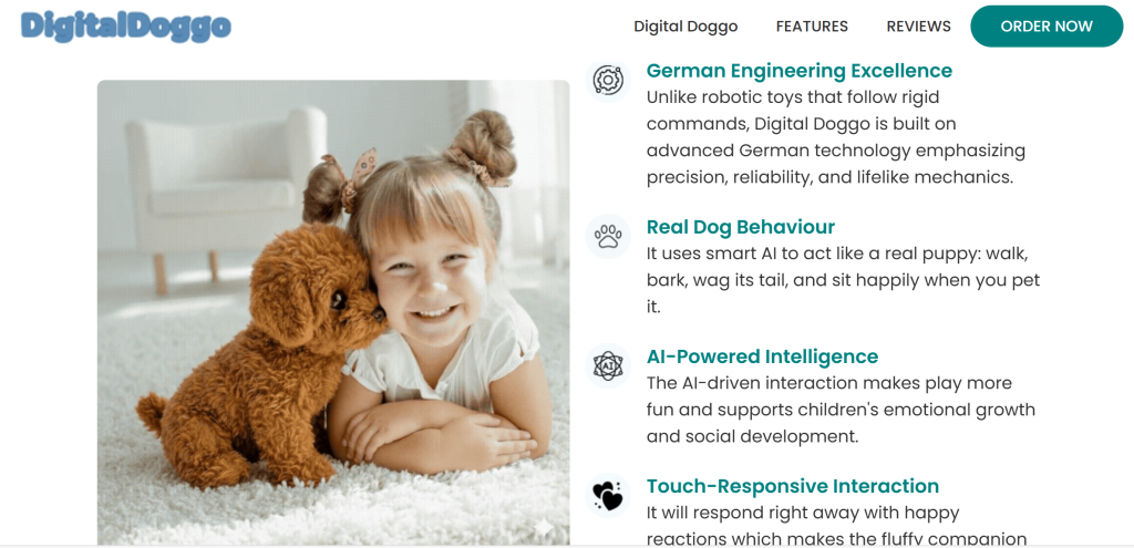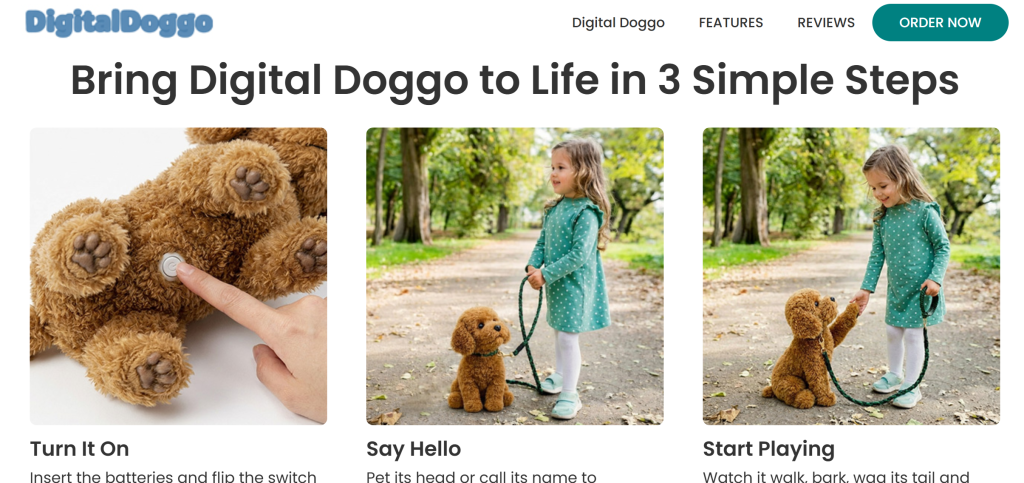 The website made the product look impressive. The videos showed the puppy moving naturally and interacting like a real pet. It looked modern and convincing, and nothing about the ordering process seemed unusual.