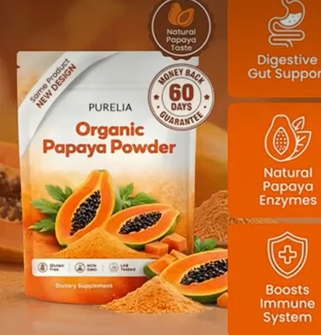 Purelia Papaya Powder is simply a papaya fruit powder that may offer mild digestive support due to the enzyme papain. However, claims about detox, immunity, and major health benefits appear to be more marketing than science. It may help digestion slightly, but it is not the powerful wellness solution some ads suggest.