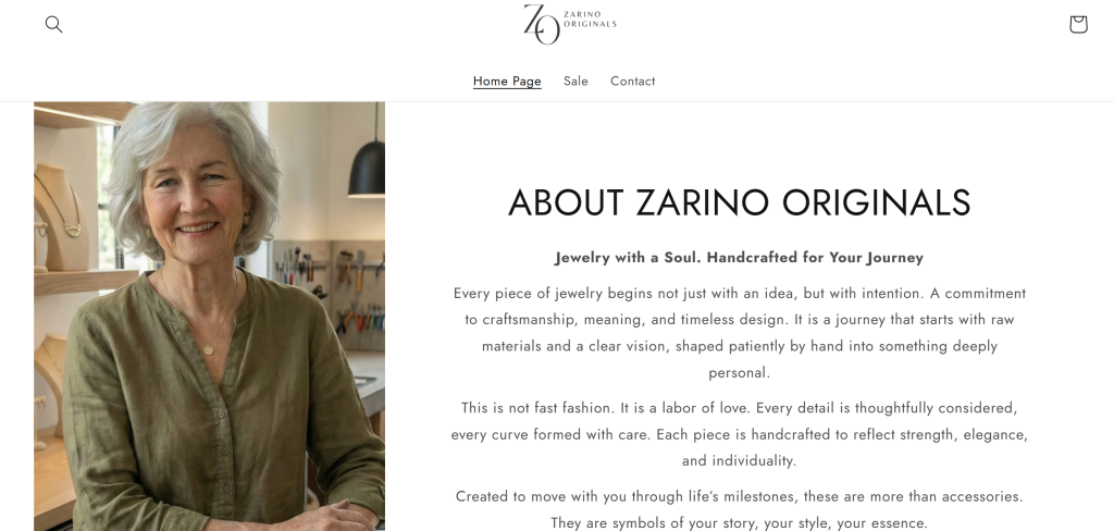 Another point that stood out was the founder story and marketing narrative used on the Zarino Originals website. The store tells the story of a jewelry designer named Suzanne Lumière who supposedly spent many years creating handcrafted jewelry before deciding to retire and close the business. Stories like this can be powerful marketing tools because they make shoppers feel like they are supporting a small artisan workshop. However, when I tried to verify the background of the designer or the workshop independently, I could not find clear external information confirming the story outside the Zarino Originals website itself.